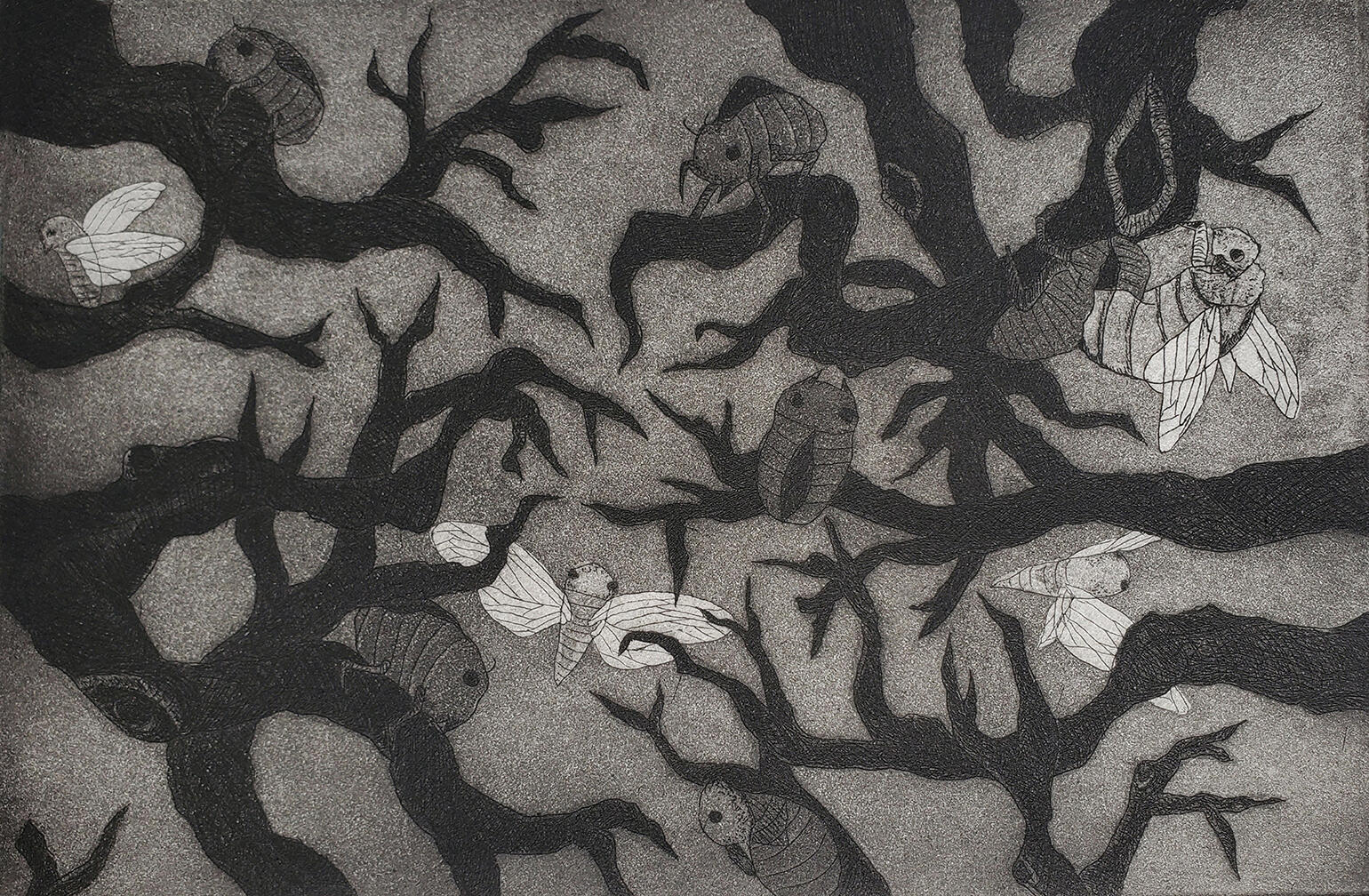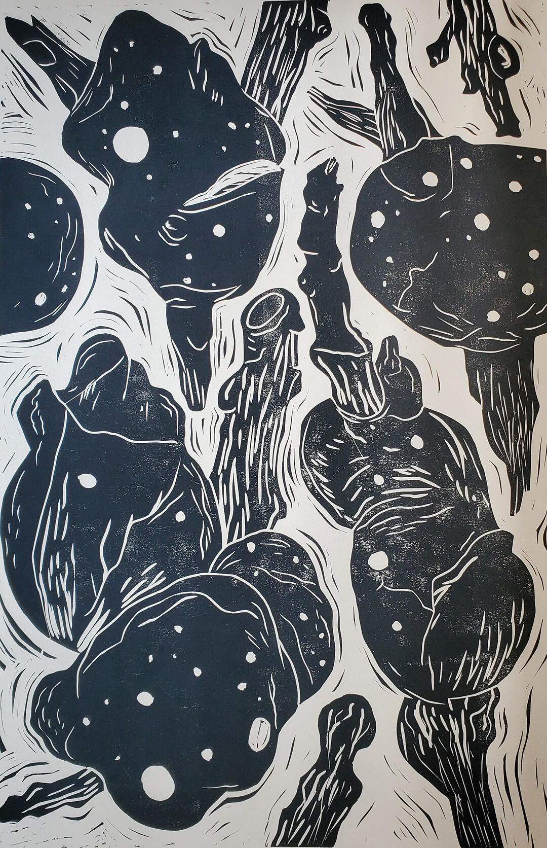 I strive to present the tranquil and intimate nature of the flora, fauna, and environments of our world. Through my art practice I want to guide the viewer to introspect and experience the consciousness of nature. I enjoy working in various tactile processes such as printmaking, ceramics, drawing, painting, crocheting, and digital illustration. My body of work also utilizes found objects in nature either as references or as direct materials to be elevated and held dear to me. The focus of my work is often themes such as details hidden in plain sight, natural cycles of change, mathematical presence in repeated forms and patterns, and the fragile and fleeting nature of life. I enjoy experimenting with combining multiple mediums in order to best express these themes. I believe that being more conscientious and communicative in these ways is an important part of understanding ourselves and how we influence the world around us.In recent years, I have been exploring more ways to make my art accessible to people through pattern making and home goods. I have always been delighted to see the beauty of nature expressed in everyday objects that reach a wide audience. Through the creation of objects such as prints, stickers, patterned fabrics, small scale sculptures, and more, I hope to make these interpretations of nature more prolific in the world.